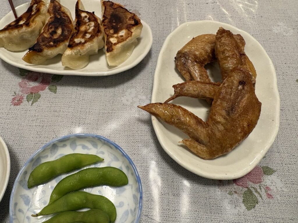 餃子と手羽先をつまみにしてビール。〆はラーメンで決まり。
