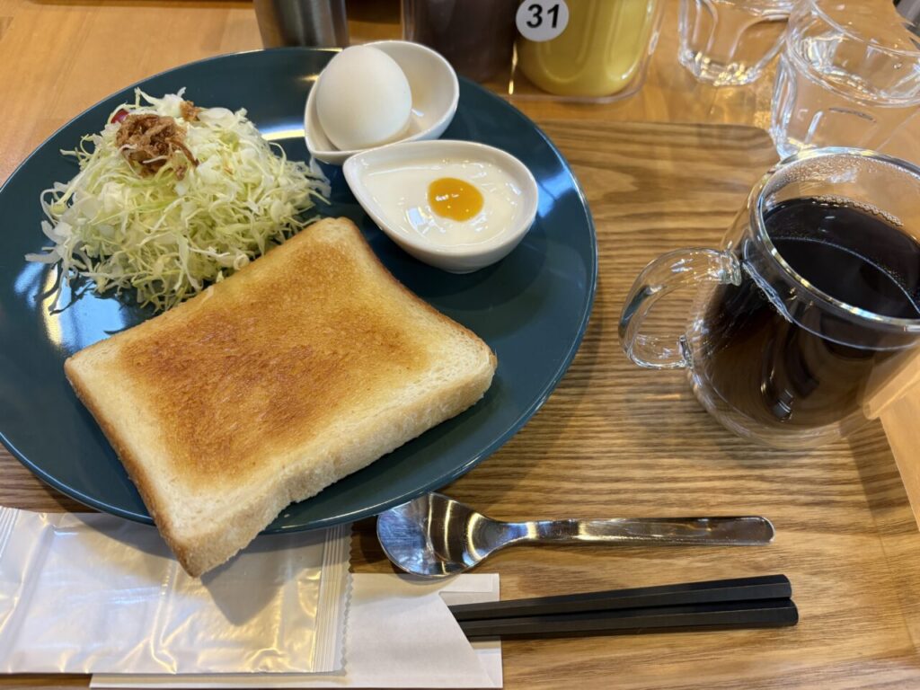 電気が利用できるのでファンヒーターをフル活動。ぐっすり眠れました。朝は道の駅のCafeでモーニング。少し贅沢な朝食。